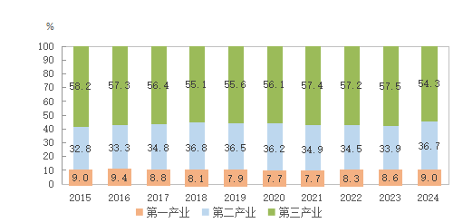图2 2015-2024年三次产业增加值占地区生产总值比重
