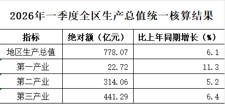 2026年一季度全区生产总值统一核算结果